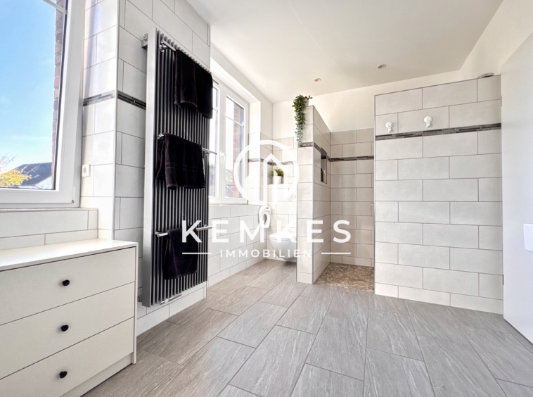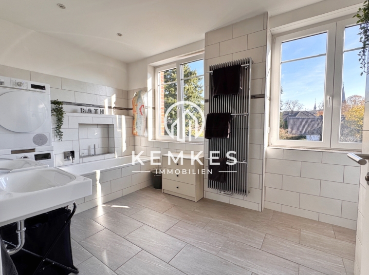 Dieses außergewöhnliche, freistehende Einfamilienhaus auf einem beeindruckenden 794 m² großen Grundstück vereint auf eindrucksvolle Weise historischen Charme mit modernem Wohnkomfort. Das Gebäude, die ehemalige Grundschule der Stadt Haldern, wurde im Jahr 2018 vollumfänglich saniert und präsentiert sich heute als stilvolles Wohnhaus mit herrschaftlich anmutendem Erscheinungsbild. Der Flair des Bestandsgebäudes wurde bewusst erhalten und mit neuzeitlicher Technik harmonisch kombiniert.